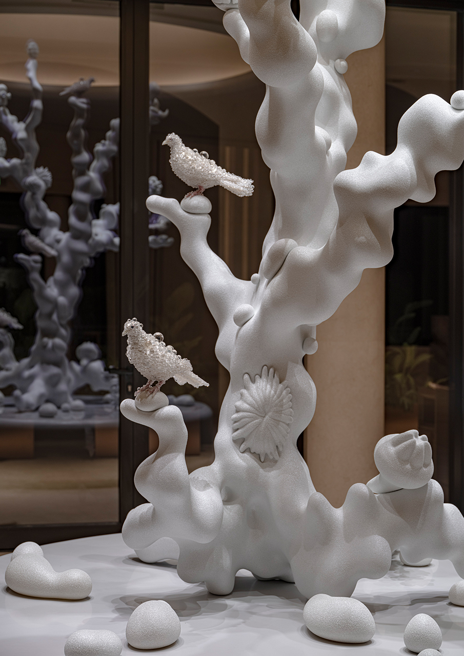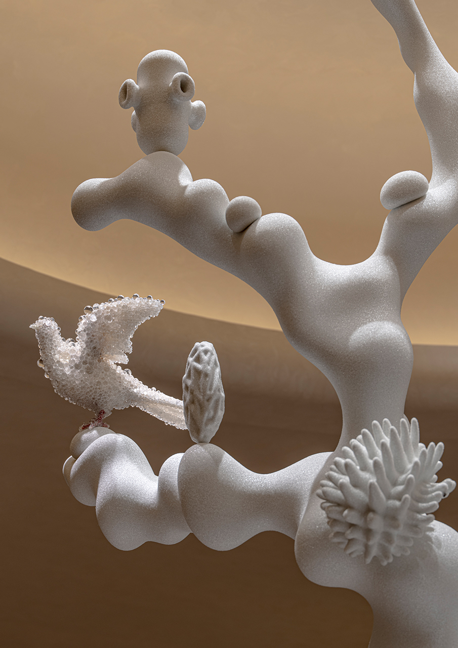 In the "PixCell" series of sculptures, transparent spheres (cells) are used to cover the surface of an object, transforming it into PixCells (pixels + cells). The object (motif) is acquired through the internet and given a skin of a large, indeterminate number of cells, resembling an image (a group of pixels) on a computer monitor. When the object is completely covered with spheres (cells) of various sizes, dividing its skin into individual cells (PixCells), it is ready to be ‘viewed’ through lenses that enlarge and distort it. This series, whose origin was influenced by globalism and the growing significance of data, produces a visual and tactile experience that queries the reality of the skin of the object, while reflecting the relationship between the digital camera lens and the object that is digitized by it.