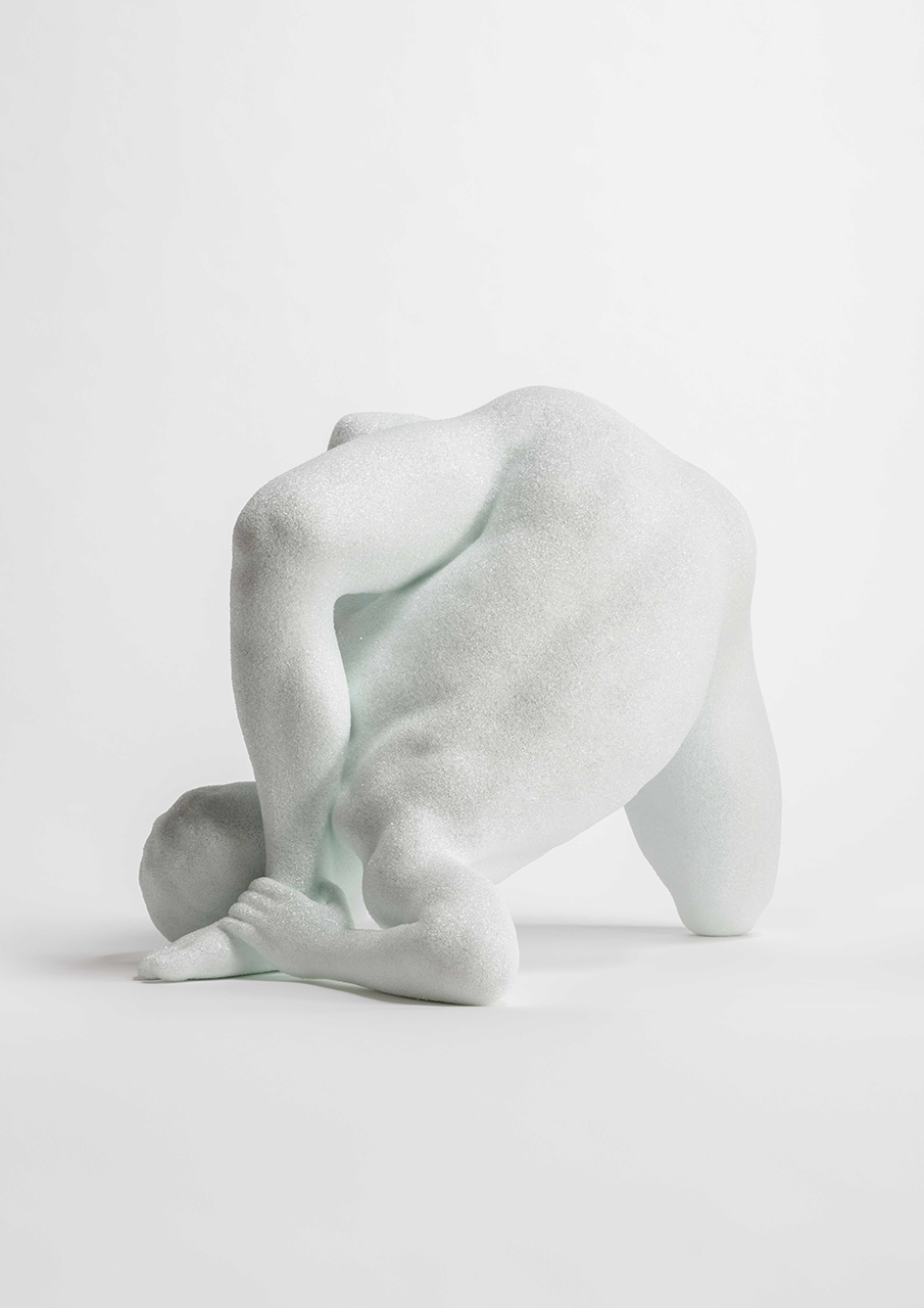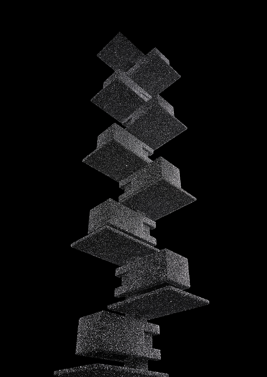 In “Particle,” objects are covered with silicon carbide powder, a material which has properties of both diamond and silicon, and emerge as radiant sparkles of light in darkened spaces. This material treatment is also used after freezing a moment of the performance work "VESSEL," for which the artist converts the physique of choreographed dancers into 3D digital information (Voxel data) to materialise them into sculptures. The work emphasises the transitions from motion to static states, or from organic to inorganic substances, and beyond materiality to particles of light.