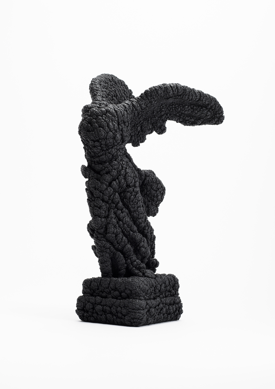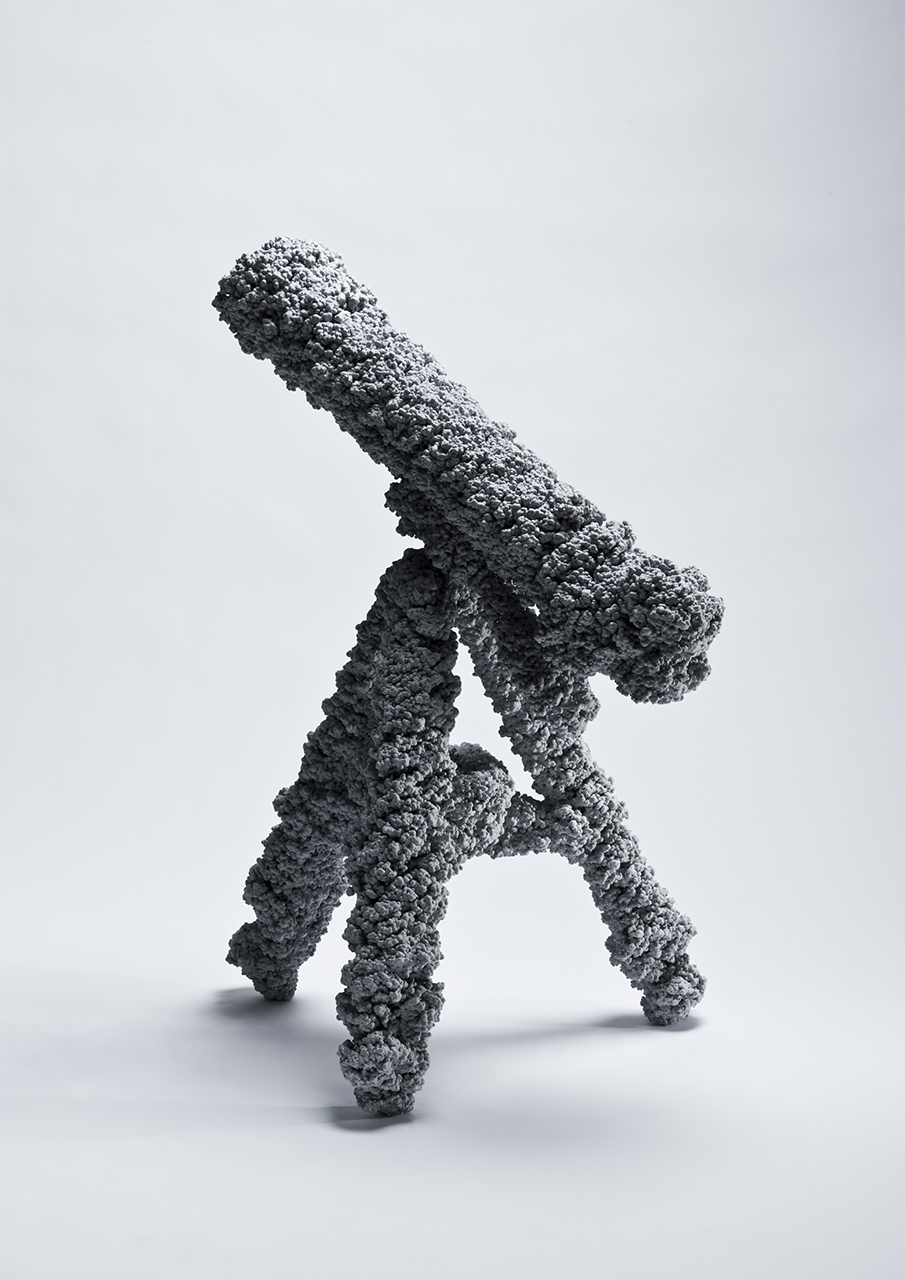 In the "Villus," series, I blow polyurethane foam as a mist onto a variety of motifs. The mist creates fine cells, like villi, that cover the irregularities on their surfaces, dulling contours and textures.